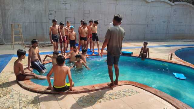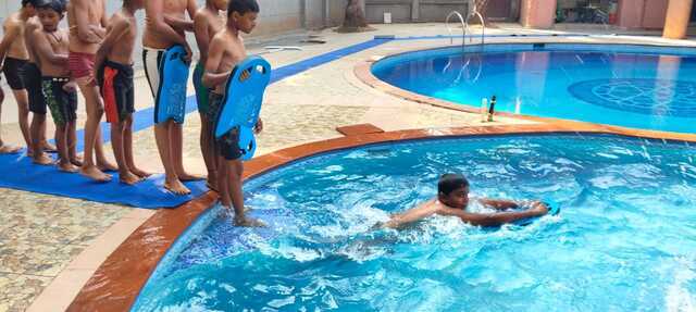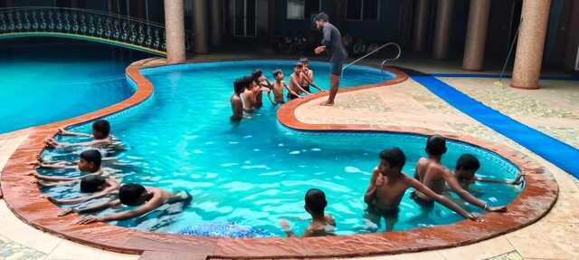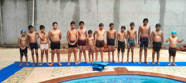 Im Rahmen des Datta Gnana Programms beginnt ein neuer Schwimmkurs. Im Januar war es im Pool zu kalt. Die Kinder und auch deren Eletern freuen sich, dass es nun endlich wieder losgeht mit dem Schwimmen.