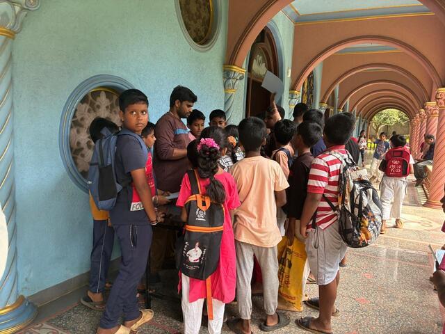 In den Schulen Indiens finden regelmäßig Wettbewerbe zur Talentsuche statt. Kinder aus Governmentschulen mit besonderen Begabungen werden ausgewählt und benannt, um zukünftig eine besondere Förderung zu erhalten. Alle ausgewählten Kinder nehmen dann an einem bestimmten Tag in einer großen Schule an einem umfangreichen Wettbewerb teil. Dieser Tag ist Prathibakaranji und findet in diesem Jahr am 19. November statt. Mehr als 800 Personen sind an diesem Tag in der Schule versammelt. In der Vergangenheit wurde das World Peace Centre schon mehrfach um Unterstützung gebenten. Und mit Hilfe der Annapurnastiftung versorgt das World Peace Centre auch in diesem Jahr alle beteiligten Kiner und Erwachsene mit Essen.